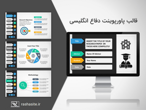 اگر شما هم برای جلسه دفاع یا پیش دفاع پایان نامه تان مجبور هستید ارائه تان را به کمک پاورپوینتی انگلیسی انجام دهید، به شما پیشنهاد می کنیم از این قالب پاورپوینت دفاع انگلیسی منودار استفاده نمایید. طراحی این قالب به سبک شکیل و رسمی و مخصوص جلسات دفاع و پیش دفاع کارشناسی، کارشناسی ارشد و دکتری و یا ارائه مقاله انجام شده است. عناوین هر بخش در این پاورپوینت بسته به موضوع و بخش بندی پایان نامه شما قابل تغییر می باشد. طرح و سبک کلی این قالب، مشابه یکی از محبوب ترین و پرطرفدار ترین قالب های پاورپوینت پایان نامه فارسی موجود در سایت ما طراحی شده است.