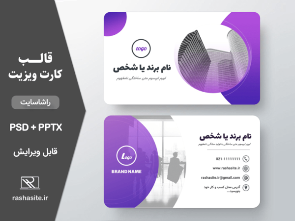 قالب کارت ویزیت بنفش پیش رو چه ویژگی هایی دارد؟