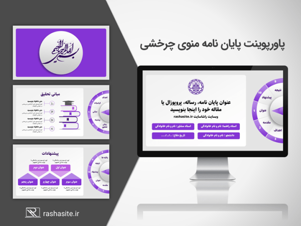 اگر میخواهید در جلسه دفاع بدرخشید و ارائهای یکپارچه، منظم و چشمگیر داشته باشید، این قالب پاورپوینت پایاننامه منوی چرخشی بهترین انتخاب برای شماست.